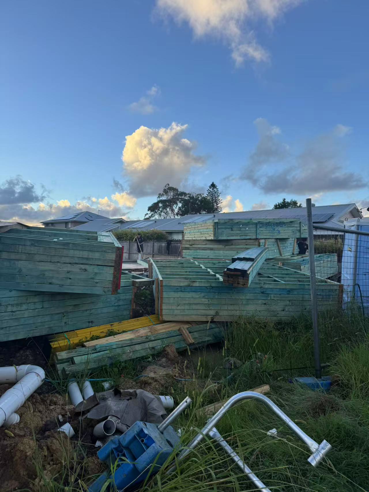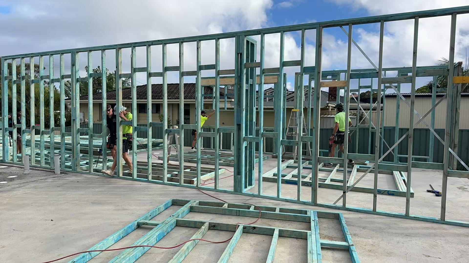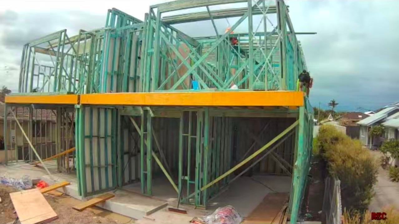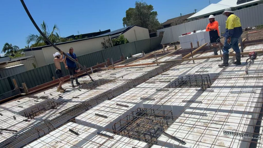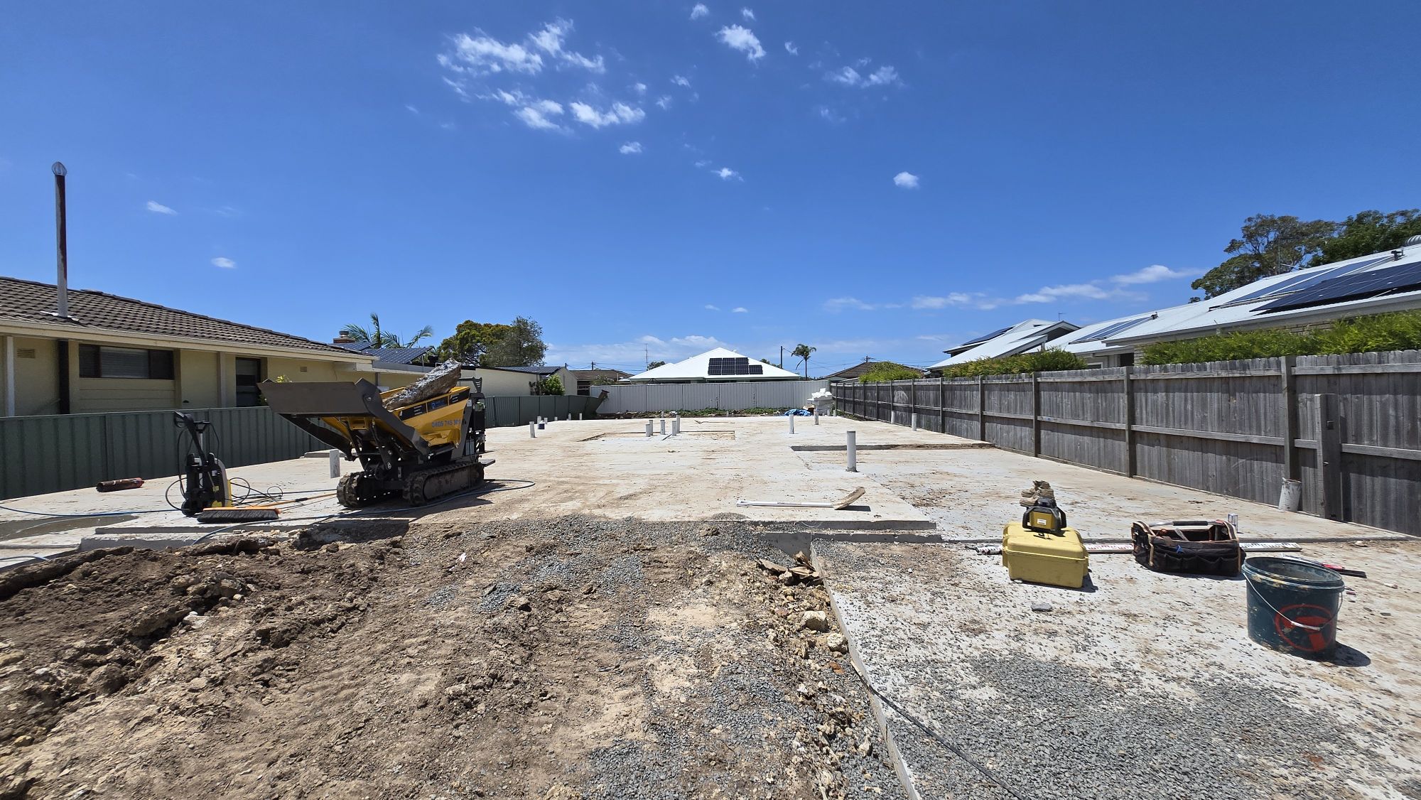 Project Information Project Type: Duplex Approval Pathway: CDC Lot Size: 603.9 sqm Total GFA: 402.4 sqm Commencement: 1/12/2025 Project Documents Architectural Plan Structural & Stormwater Engineering Drawings Project Gallery Waffle pod slab Waffle pod slab Under-driveway OSD Completed slab Prefab frames delivery First wall up TV/fireplace wall